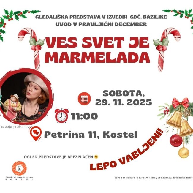 Pravljični december prihaja! Pridružite se nam na čarobni otroški predstavi »Ves svet je marmelada«, kjer bo gdč. Bazilika dokazala, da