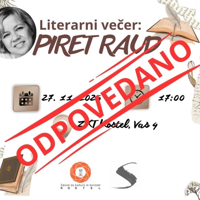 ODPOVEDANO zaradi bolezni pisateljice! Literarni večer s Piret Raud 27. november 2025 ob 17.00 ZKT Kostel, Vas 4 Prijazno vabljeni na navdihujoč