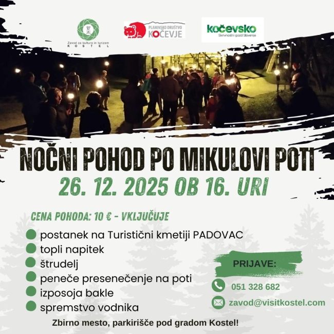 Vabljeni na prav posebno zimsko doživetje! Pridružite se nam na nočnem pohodu po Mikulovi poti, ki bo potekal v prazničnem vzdušju