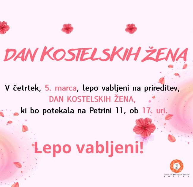 🌸 DAN KOSTELSKIH ŽENA 🌸 V četrtek, 5. marca, vas ob 17. uri vabimo na Petrino 11, da skupaj praznujemo vašo